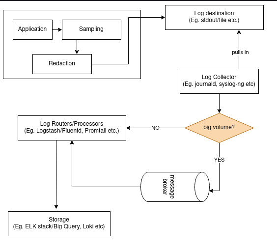 - ELK stack, BigQuery, Graylog, splunk, datadog, Loki etc.