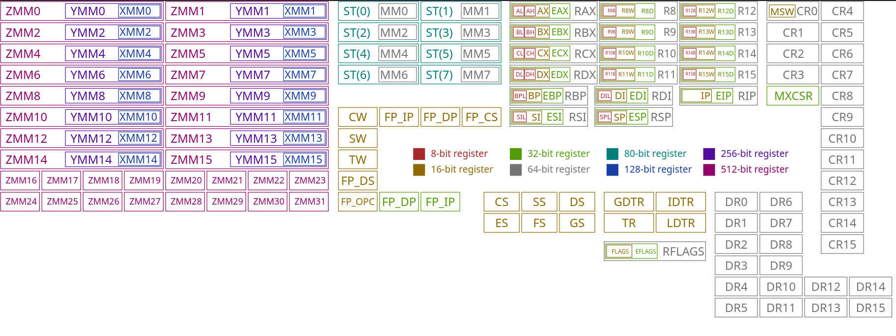 - QWORD (64 bits/8 bytes)