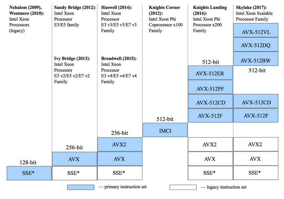 - See x86-64 Microarchitecture Feature Levels