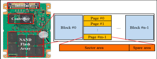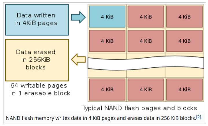 - Can be erased, written and read in blocks (or pages) which are generally much smaller than the entire device.