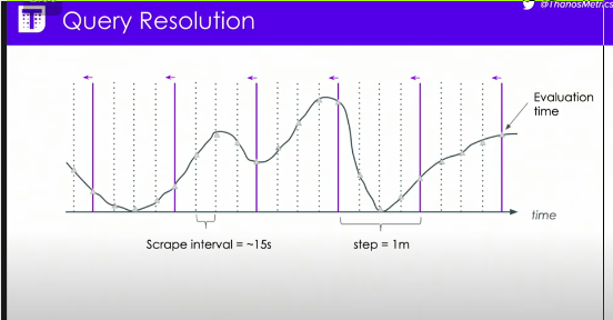 5sfor a time series scraped withscape_intervalset to1m, Prometheus doesn’t have more datapoints to evaluate!This explanation is equally true for any value for the resolution. Sample timestamps for different time series can be at arbitrary intervals and not time-aligned with each other but you still need to be able to select multiple series and aggregate over them, so they need to be artificially aligned .