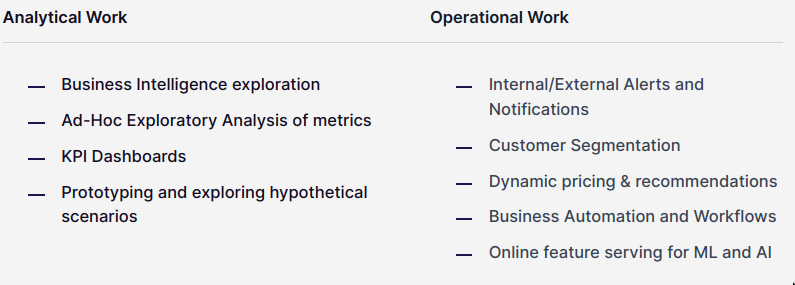 - Operational is slightly different from transactional&analytical, somewhere in the middle