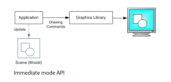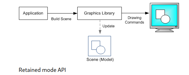 <canvas>element, we’re responsible for managing state, redrawing etc. So when you’re using CanvasAPI or webGL, you’re operating in Immediate mode. - Most games are usually in immediate mode.