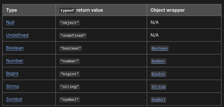 typeofoperator. For anything other than a pre-defined list it’ll return “object”. This just signals that it’s some object, something’s that’s not a primitive. (typeofis like a limited best effort thing) - Eg.
