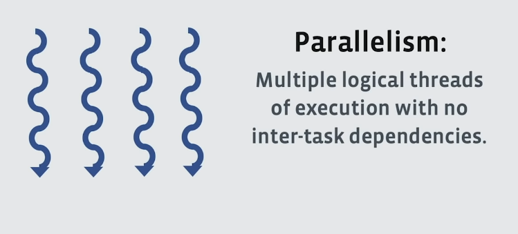 - Parallelism is a way to speed up code: pieces of your program don’t have to all wait their turn while one task at a time executes.