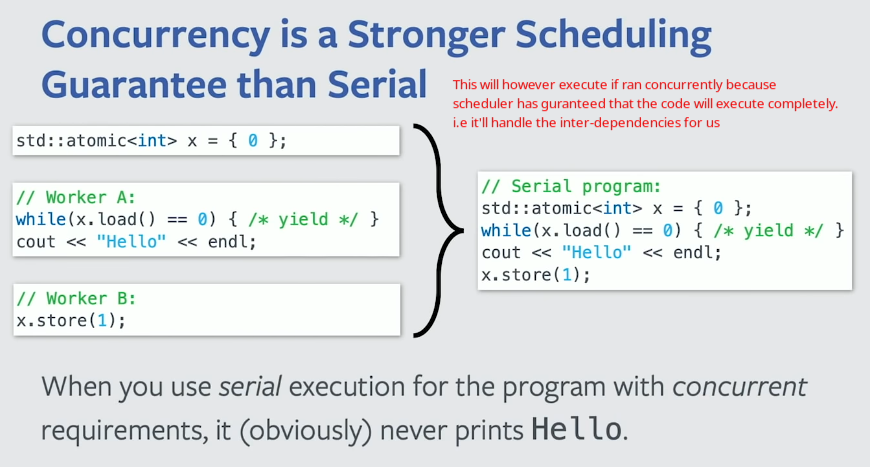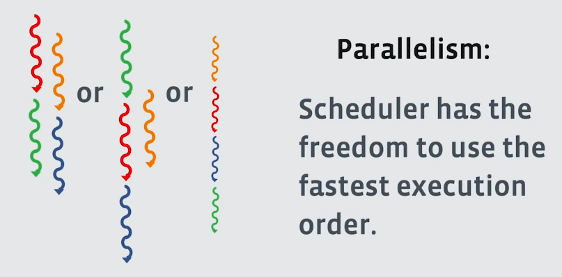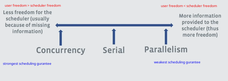 - We can use concurrent mechanism(eg. thread pools) to run parallel code but it’ll be slow. Because, now the user is not giving the scheduler the guarantee that there are no cross-task dependencies.