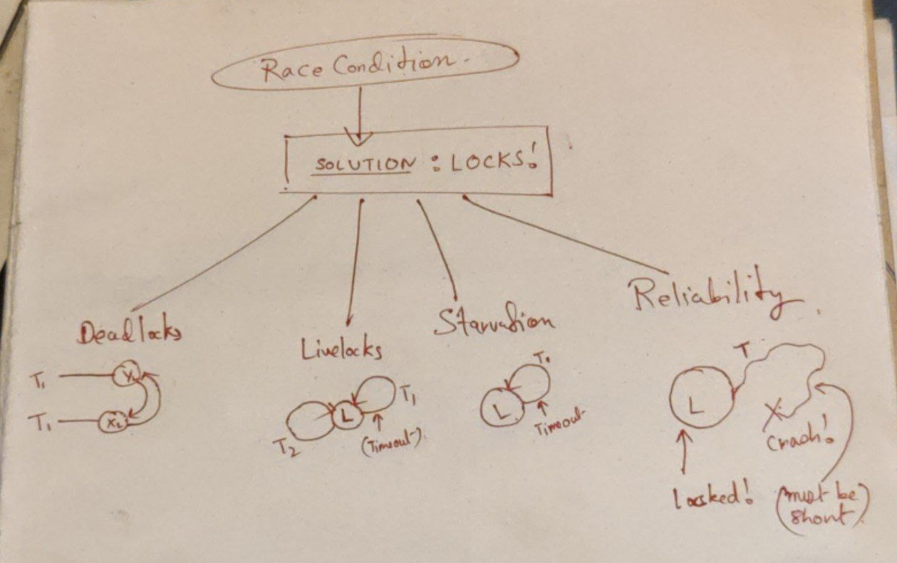 - OS guarantees not to create a race condition between threads attempting to use the lock.