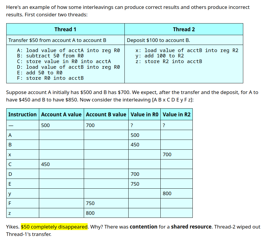 - Writes: Write access must be exclusive (that is, at most 1 thread at a time)