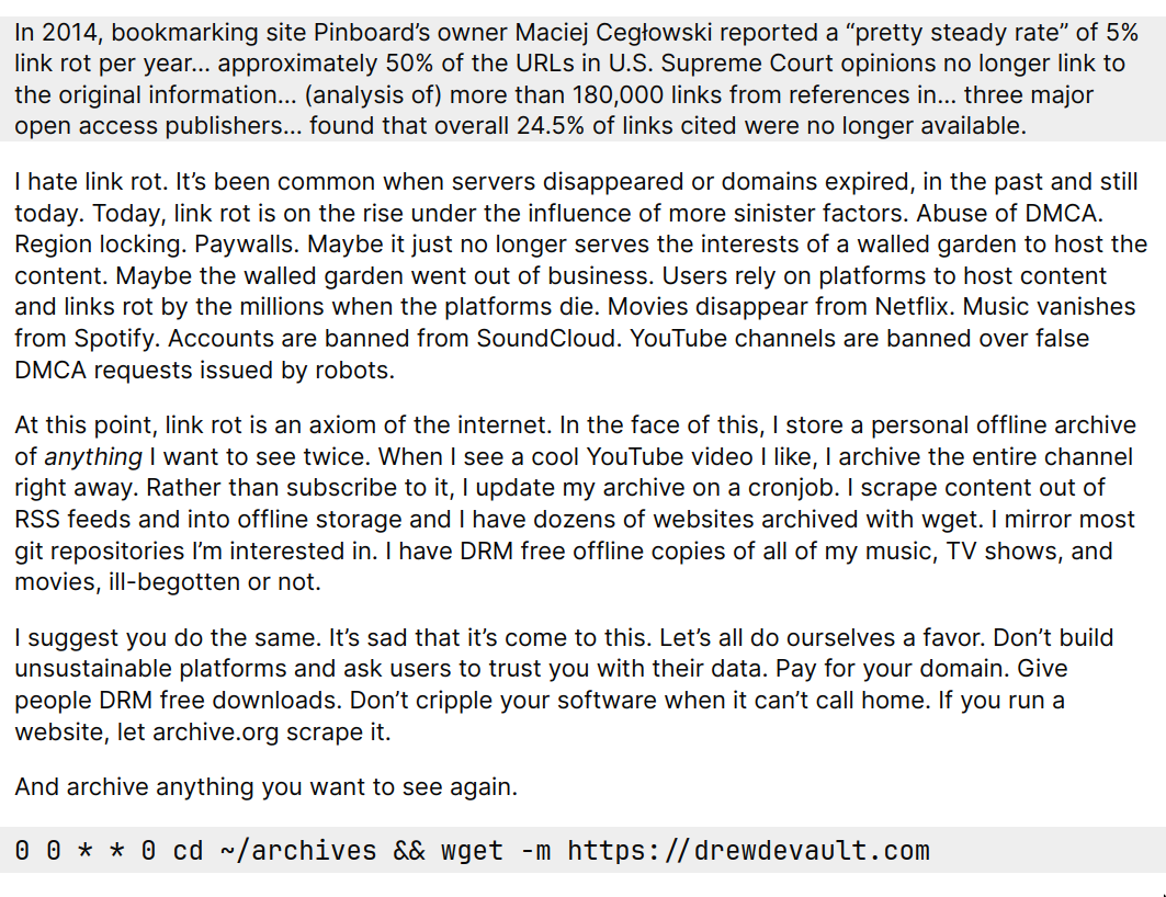 Standard tools for downloading entire sites (see offlinesavesite alias) |