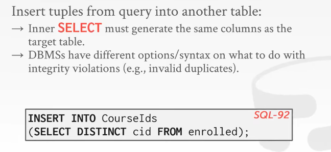- SQL is based on bags (duplicates) not sets (no duplicates).
