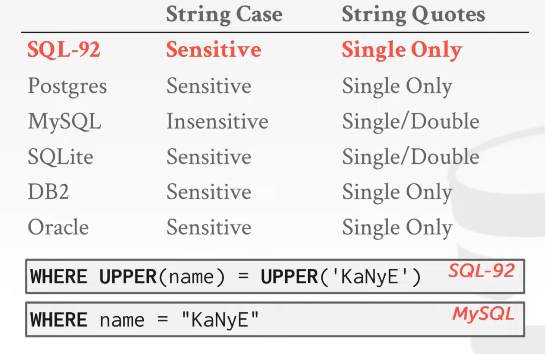 SUBSTRING,UPPER,||/+/CONCAT, DBMSes add their own shit