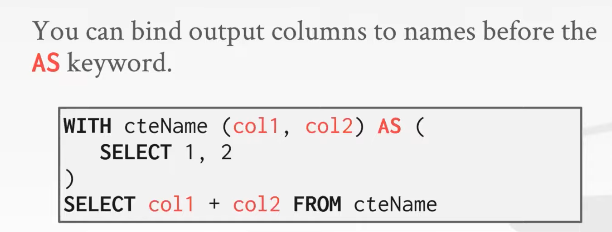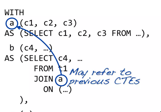 WITHWITHare the “private methods” of SQLWITHis a prefix to SELECTWITHqueries are only visible in the SELECT they precede