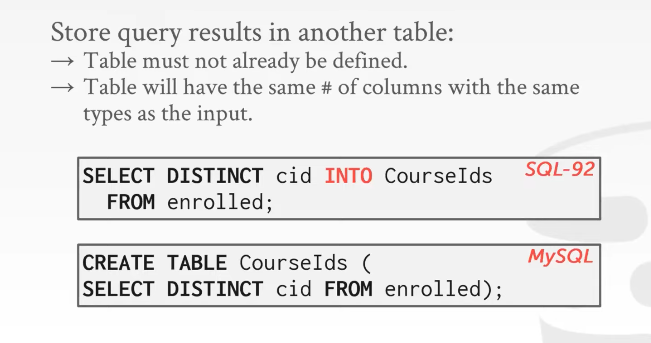 ORDER BYsome column even if that column is not mentioned in theSELECTstatement. - We can also