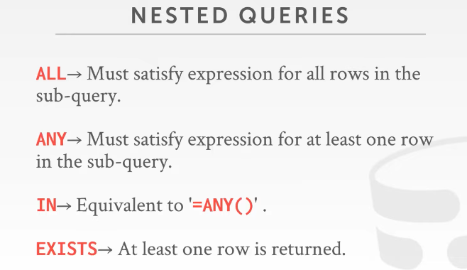 - Difficult to optimize, the optimizer will try to optimize it into a JOIN or do something else etc.