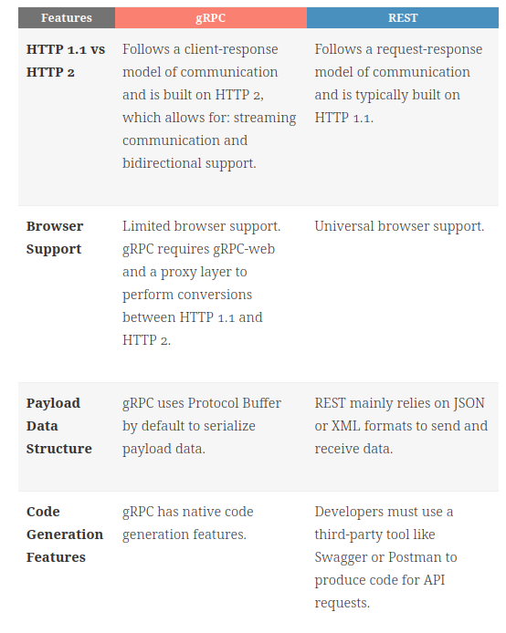 - Offers features such as, Streaming, Cancellation, Circuit Breaking, load balancing, tracing, metric collection, header propagation,authorization, IDL etc.