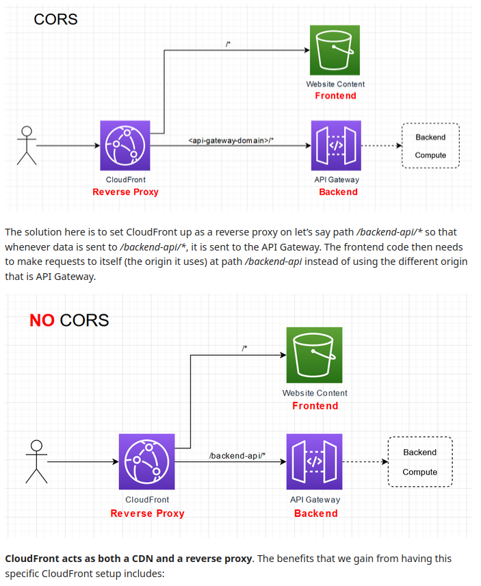 - Only way to eliminate CORS: Have both the frontend and the backend on the same origin.