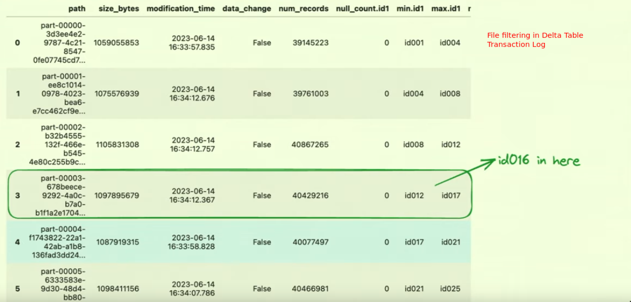 - With delta lake, because of the transaction log, we can avoid file listing and get the path directly.