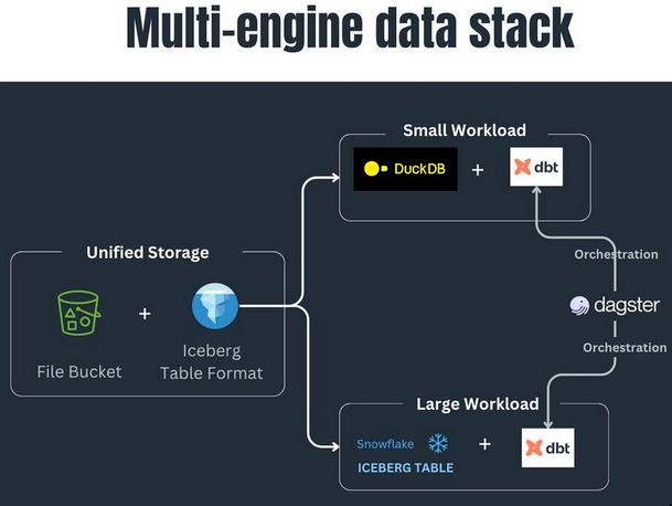- Eg. snowflake, can be duckdb, can even be a bash script for that matter