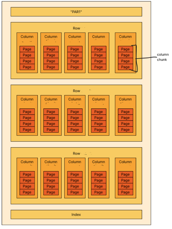 - Parquet file is split by