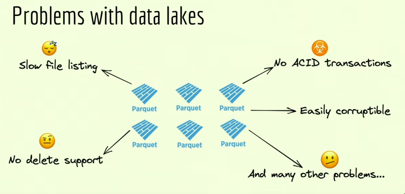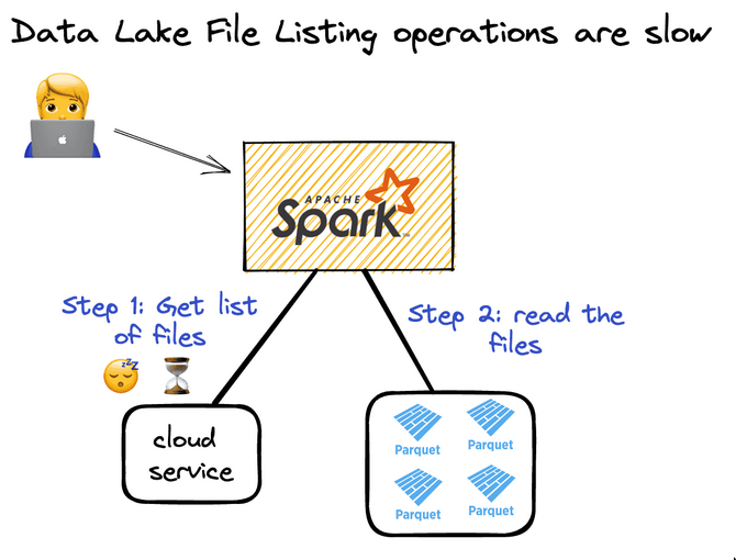- When you want to read a Parquet lake, you must perform a file listing operation and then read all the data. You can’t read the data till you’ve listed all the files.