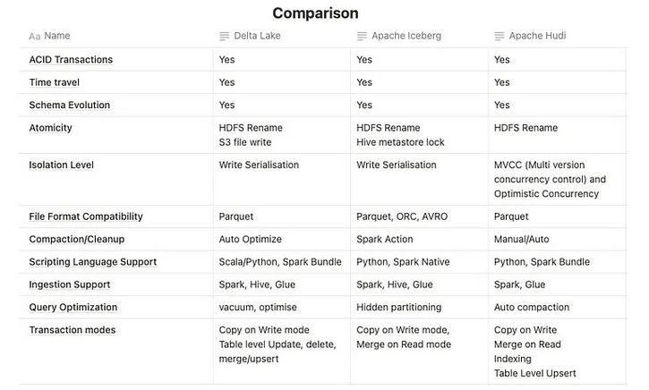 - Transaction Layer: Open table formats, eg. Delta Lake