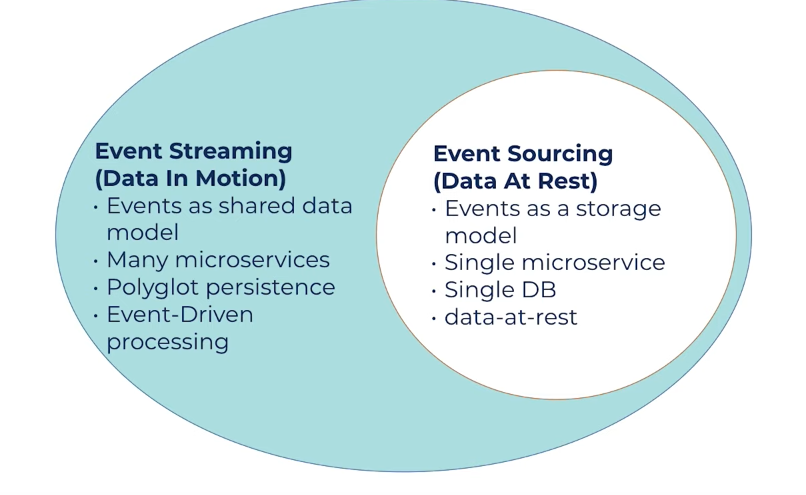 Event streaming:Storageandmovementof data in real timeEvent processing:Processingandconnectivityof data. connecting source & destination.- Eg. kafka ecosystem