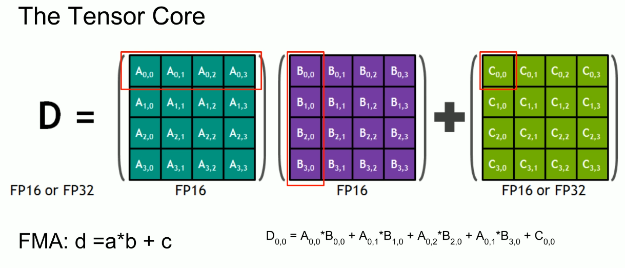4x4 FP16matrix and multiply it by another4x4 FP16matrix then add either aFP16/FP32 4x4matrix to the resulting product and return it as a new matrix.