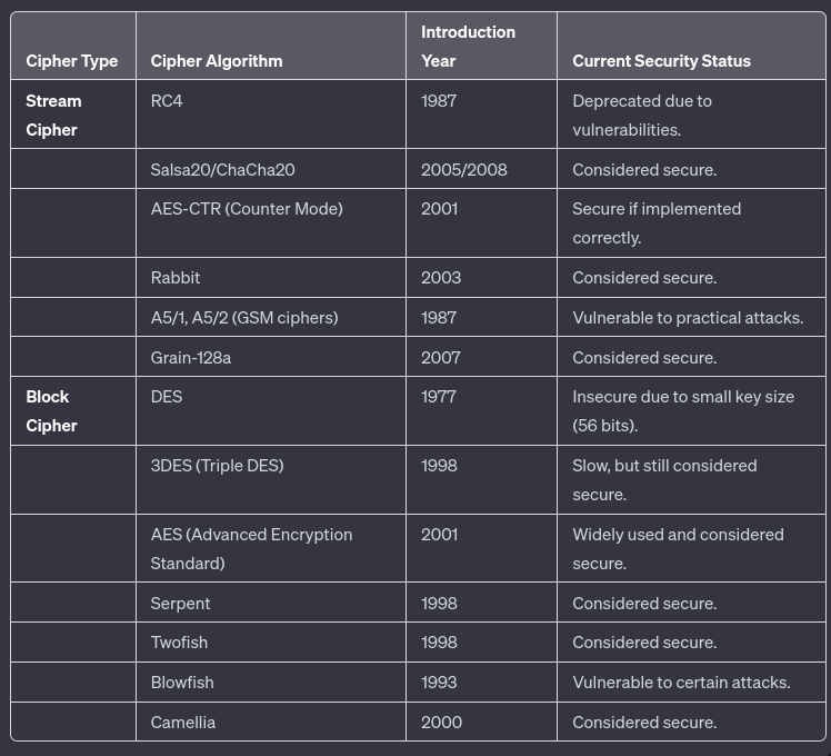 - Stream cipher may seem less secure compared to a block cipher (In a block bits are sort of jumbled around & don’t have fixed position)