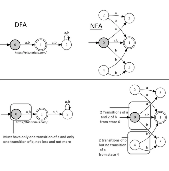 - Every DFA is an NFA, but opp. not true