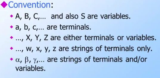 variablesnonterminals: A finite set of other symbols(strings), each of which represents a language.- Recursive sets of