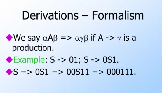 derivestrings in the language of a CFG. So we can have many different derivations of the samestring- Starting with the