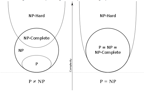 P,NP,NP-hardandNP-completemean. NPproblems here refers toNP-completeproblems. (VERIFY)Pis a subset ofNP, but not sure if it’s a proper subset.P != NPis currently the general consensus by Computer Scientists- It’s easy to understand for mere mortals too. It’s almost is natural.