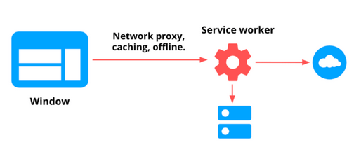 app<->service worker<->browser APIs<->network