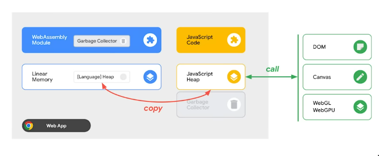 - Currently in the browser, among other problems, each worker has to instantiate all the host javascript objects and instantiate its own copy of the wasm module, which has its own unique copy of the imports and the function pointer table. It’s definitely way less elegant than real threads and potentially creates performance and stability issues.