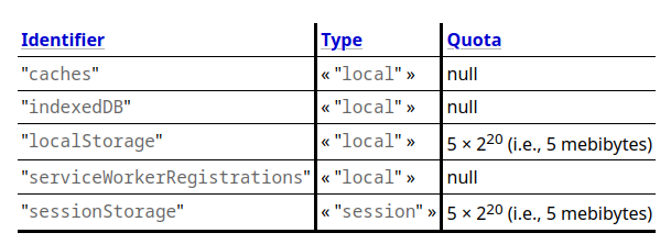 Storageobject is used forsessionStorageandlocalStoragefor eachorigin