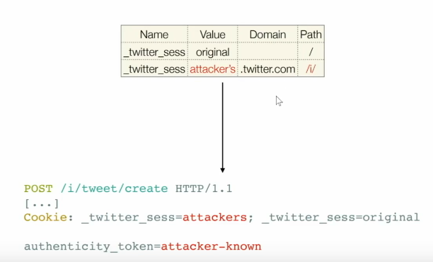 b.cool.com, origin will getx=yandx=zboth. And server has no idea what is what anymore. The ordering of cookies come into play here. Usually the cookie created earlier takes initial positions. So forced duplicate cookies are placed later. - This can allow us to bypass