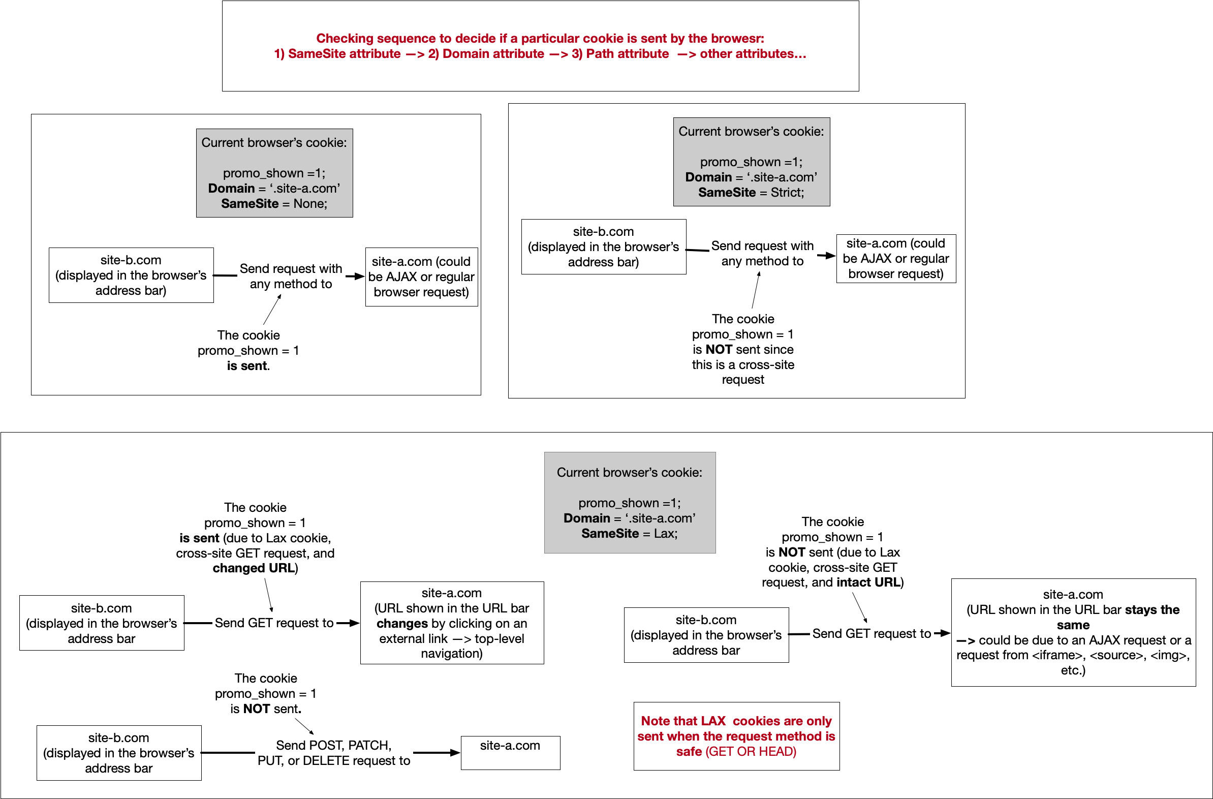 - Cookies will not be sent when request is something like iframe, img src etc.