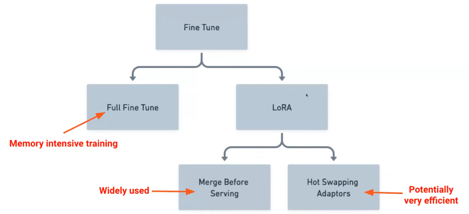 - If you have a vast amount of data, i.e., tens of thousands of instructions, it’s best to fine-tune the actual model.