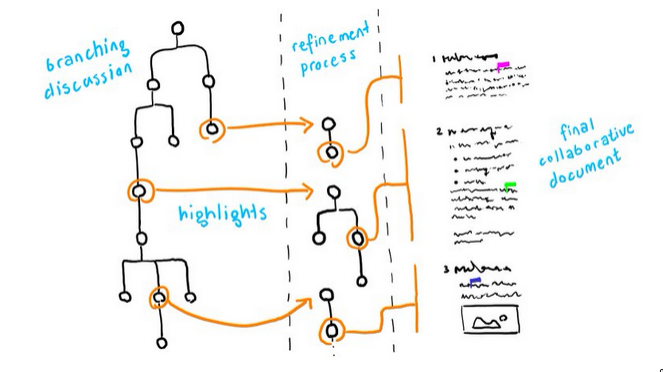 - System that goes beyond forums and linear discussion threads, with highlights and summarization to distill key ideas
