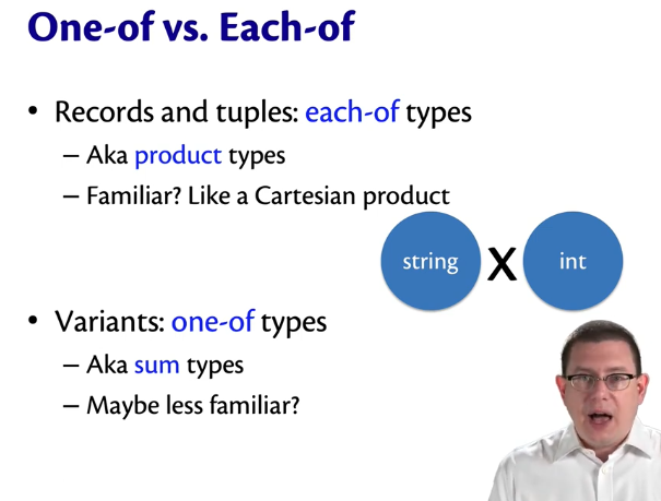 Algebraic Data types - Each value of a variant comes from one of many underlying sets