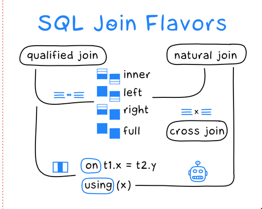 USINGbut w/o even specifying the column name - Like Theta join, it can be inner, left, right, or full