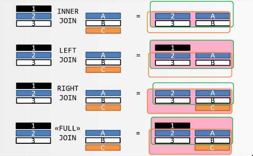 - Produces the set of all records in Table A and Table B, with matching records from both sides where available. If there is no match, the missing side will contain null.