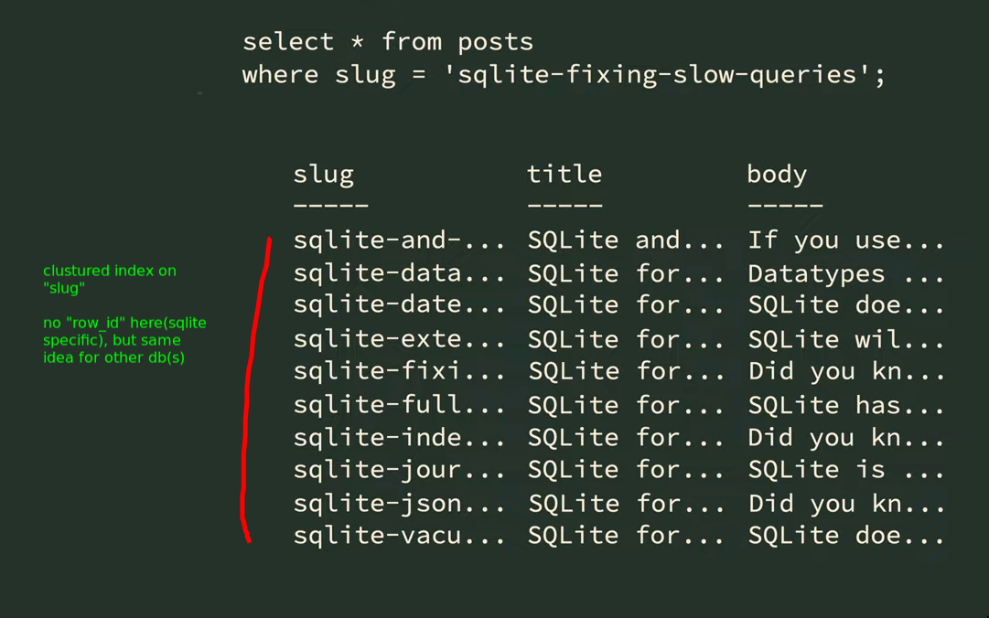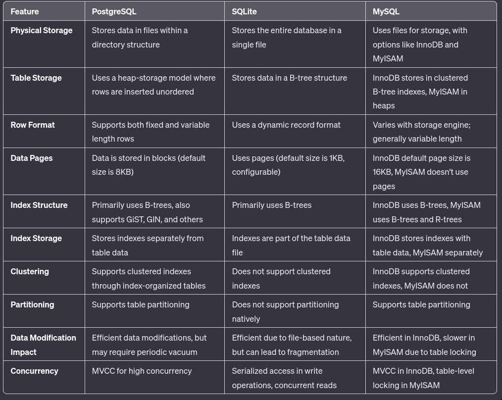 WITHOUT ROWID, PostgreSQL usesCLUSTERcommand etc.