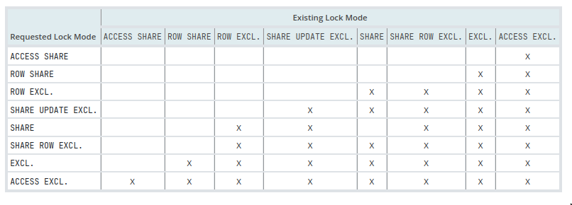 does have an actual table lock named “EXCLUSIVE” but it’s refering to that specific lock and not to this generalized definition of