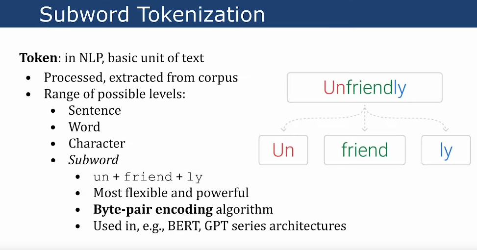 - “I love cats” would be tokens: [“I”, “love”, “cats”] if using word level tokenization.