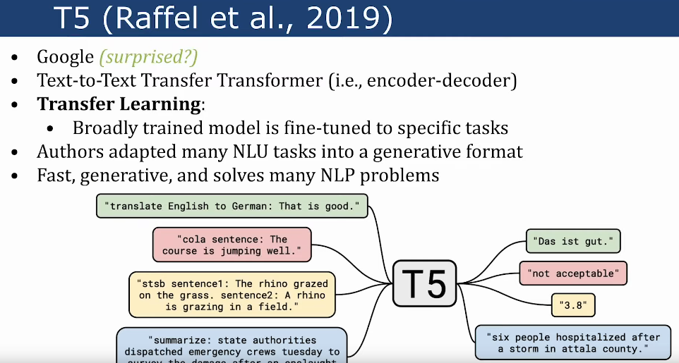 - encoder-decoder models (e.g., T5)