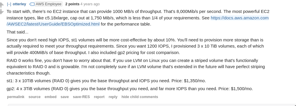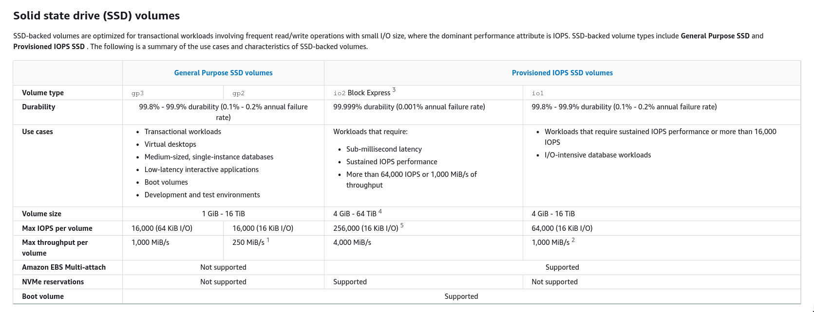 - Limit on max size of each EBS volume: 64TB
