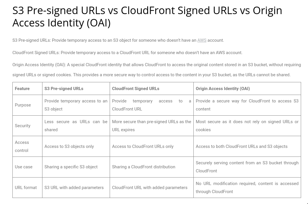 S3hasPresigned URLsCloudfronthasSigned URLs / Signed Cookies- AWS back at its bs