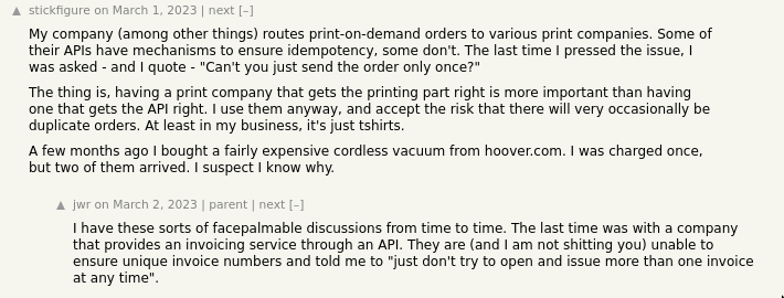 - “In my experience, the purist version of “exactly-once” exists as a vague, wishy-washy mental model in the brains of developers who have never thought hard about this stuff”