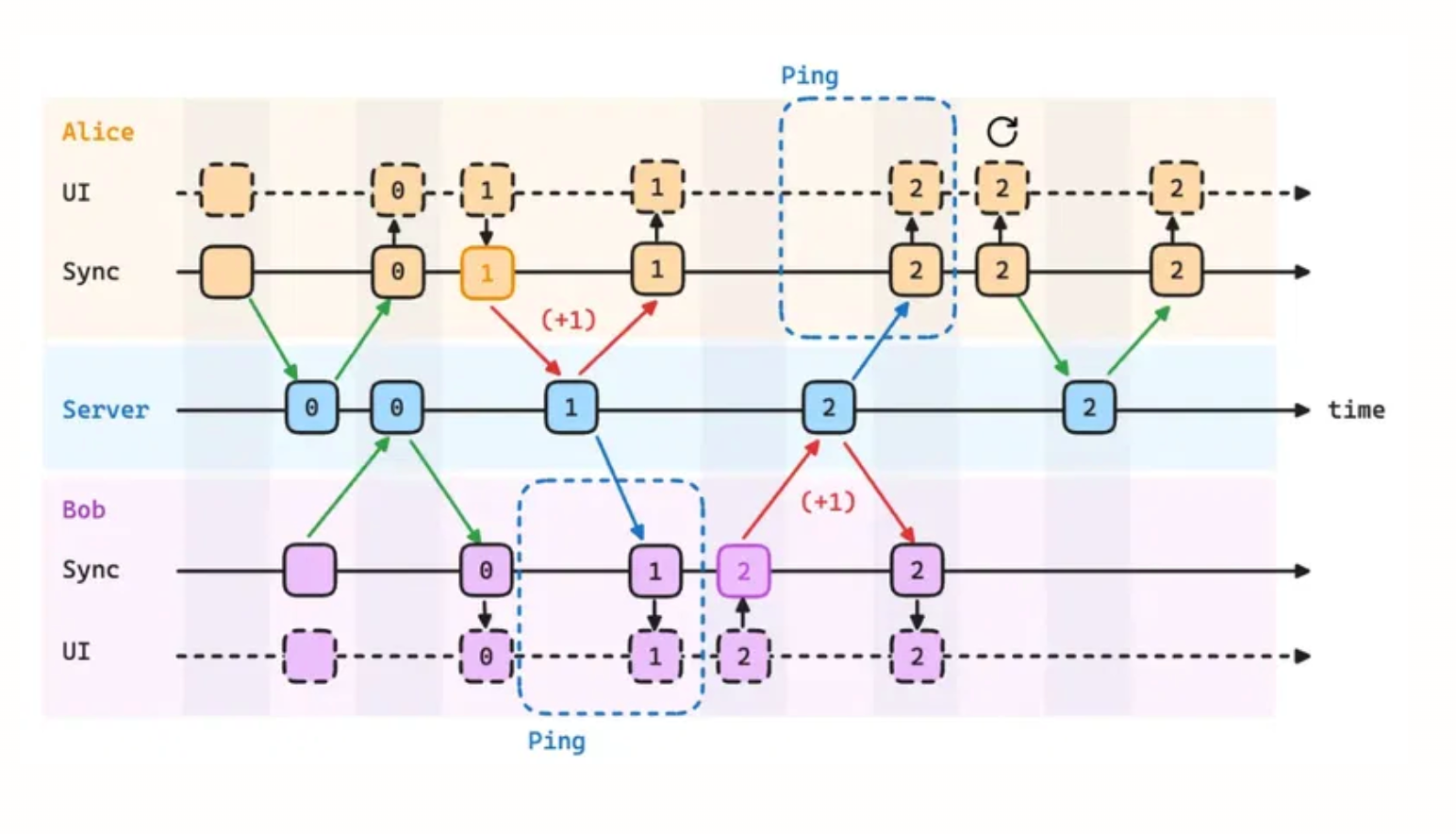 Optimistic Update needs a server synchronization strategy. Primarily 2 types: